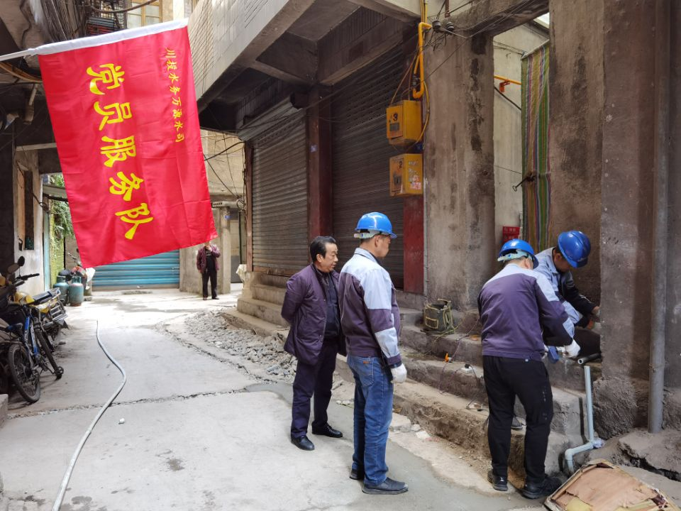 随着城镇化建设步伐的加快,万源城区供水面积不断扩大,秦川社区岩湾二巷的供水管道因在建设时敷设管径过小,致使供水压力不足,影响到居民的正常生活。在了解到这一情况后,公司组织工程技术人员多次深入现场勘察,研究制定出可行、经济的施工方案,并在4月12日组织党员服务队对老旧的供水管线进行改造维修,帮助居民解决了供水压力不足的实际问题,得到了群众的一致好评。