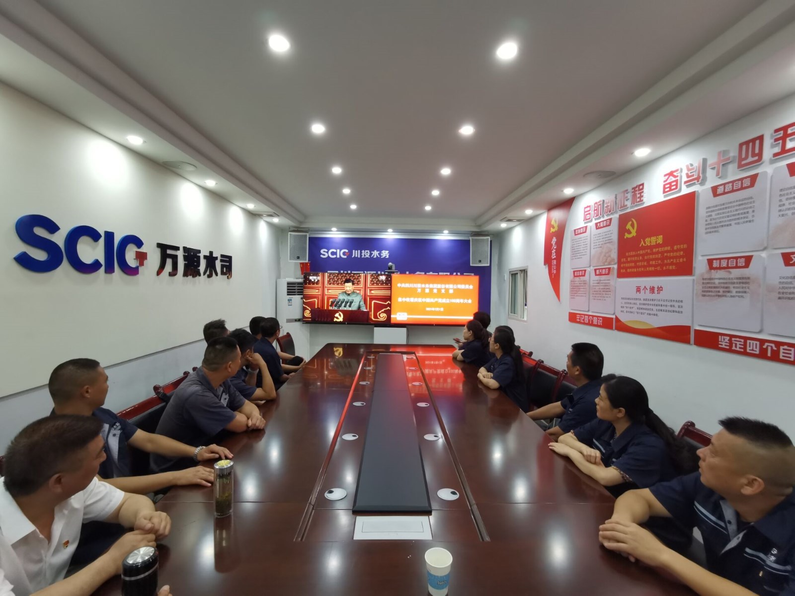 7月1日上午8时,庆祝中国共产党成立100周年大会在北京天安门广场隆重举行。中共中央总书记、国家主席、中央军委主席习近平发表重要讲话。中共四川必赢242net官网股份有限公司委员会万源党支部组织党员干部共计27人,齐聚党员活动室,收听收看了大会直播盛况。