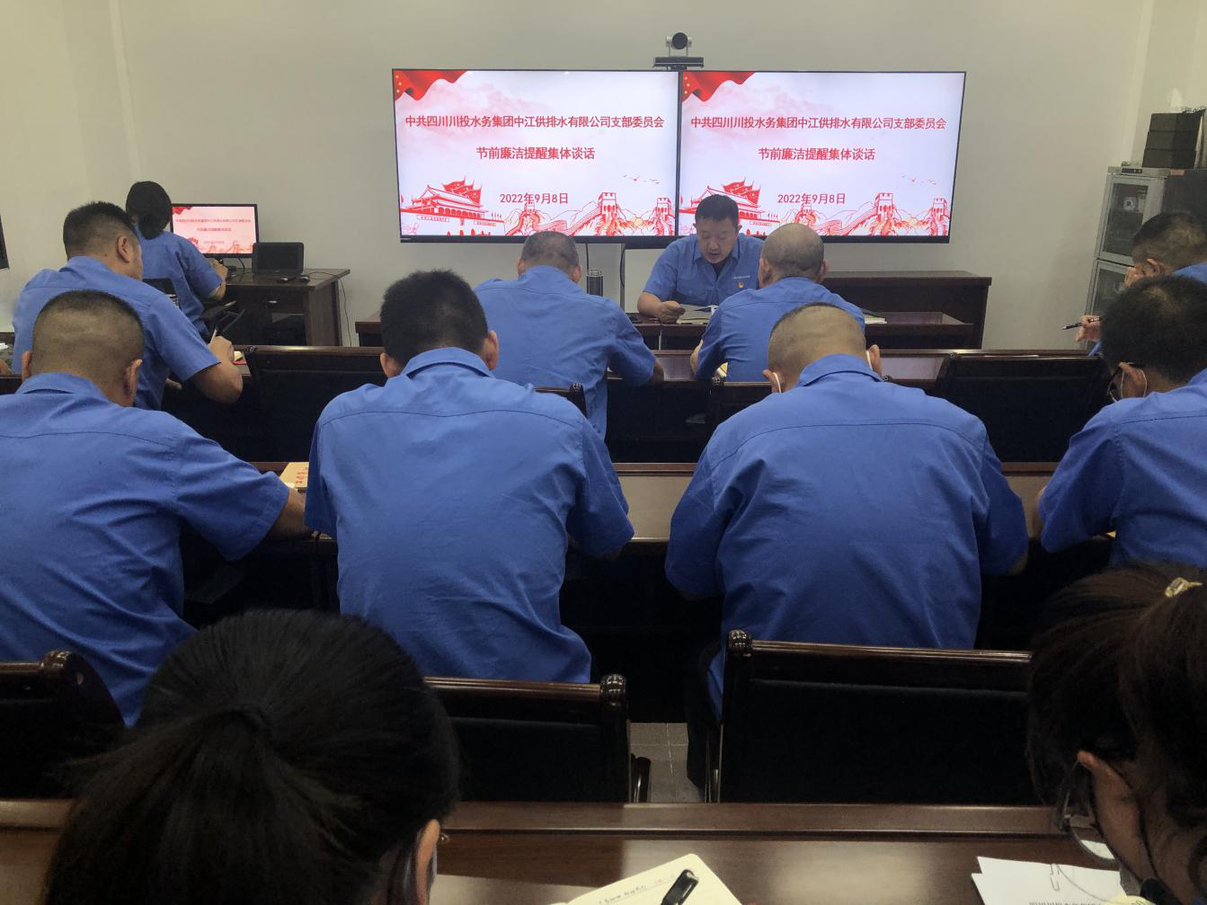为深入推进党风廉政建设,加强廉政风险防控,增强党员干部廉洁自律意识,积极营造风清气正的良好环境。9月8日下午,中江水司党支部开展廉洁教育主题党日活动,支部全体党员、入党积极分子、公司班组以上管理人员、廉洁关键岗位人员等四十余人参加了活动。
