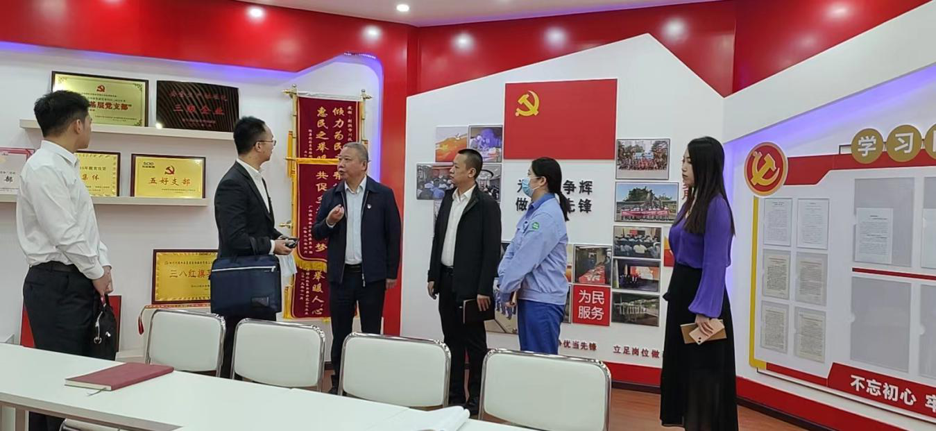 2022年10月20日上午,为认真落实新时代党的建设总要求,坚持服务生产经营不偏离,促进党建和生产经营深度融合,积极推广党建特色品牌创建,充分发挥基层党组织战斗堡垒和党员先锋模范作用,让党旗在一线高高飘扬。四川生态环保集团党建部副部长陈元隆一行检查组就射洪水司党支部基层党建特色品牌“五星小水滴”创建情况进行专项检查,必赢242net官网党群纪检工作部部长李至彬,射洪水司纪检委员、副总经理杜刚陪同检查。