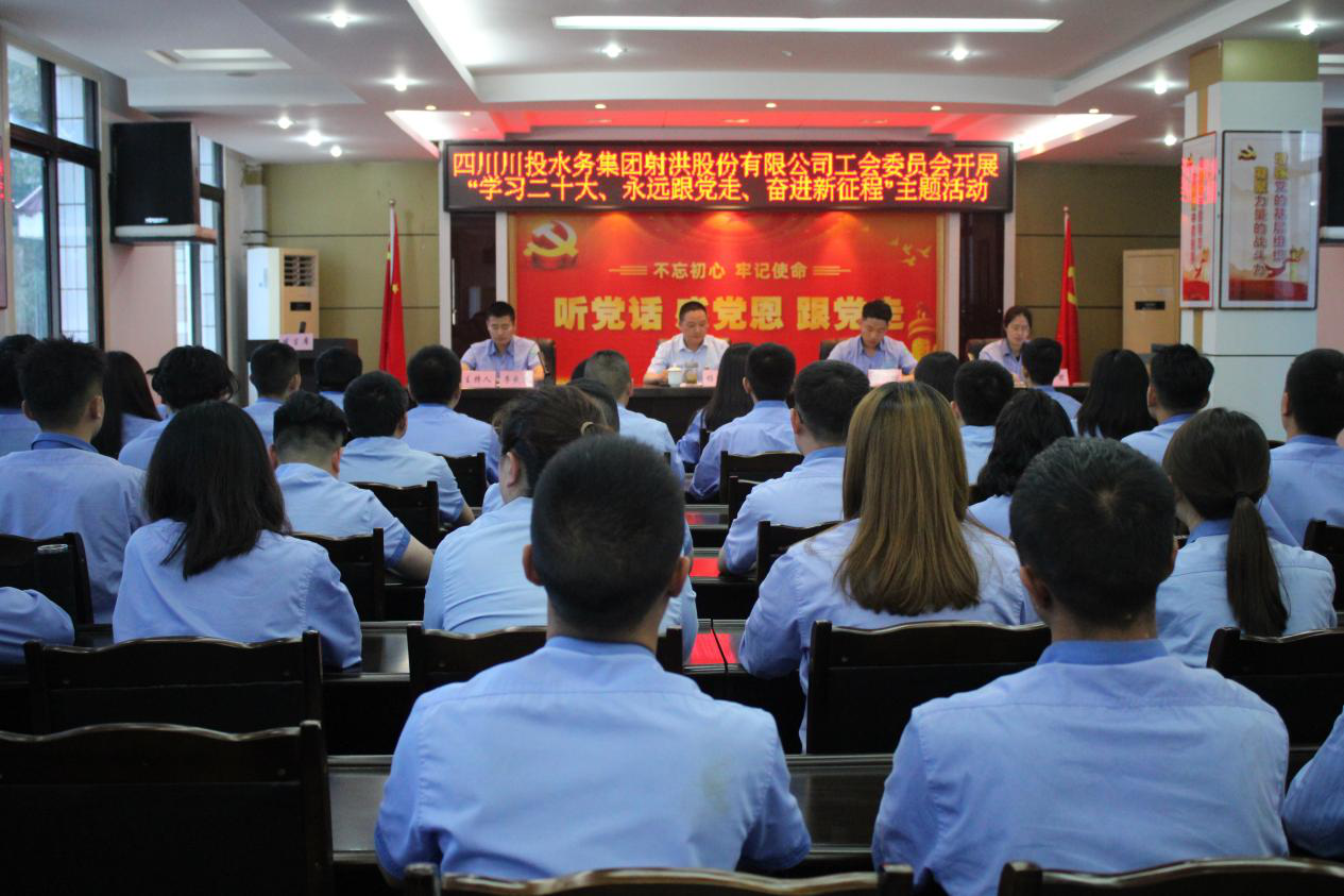 5月4日下午,川投水务射洪水司工会组织“学习二十大、永远跟党走、奋进新征程”主题活动,专题传达学习党的二十大精神、省第十二次党代会、省委十二届二次全会和省第十五次团代会精神,聚焦主责主业,安排部署贯彻落实工作。
