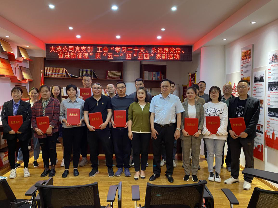 2023年4月27日下午,在“五一”国际劳动节和“五四”青年节来临之际,为全面学习贯彻习近平新时代中国特色社会主义思想,紧紧围绕学习贯彻党的二十大精神为主线,大英水司党支部、工会在五楼党员活动室召开了“学习二十大、永远跟党走、奋进新征程”庆“五一”迎“五四”表彰大会。受大英公司党支部书记、执行董事、总经理王文川委托,大英公司副总经理、工会主席王洪先主持会议。公司全体党员、中层干部、职工代表、青年代表、受表彰先进个人参加会议。