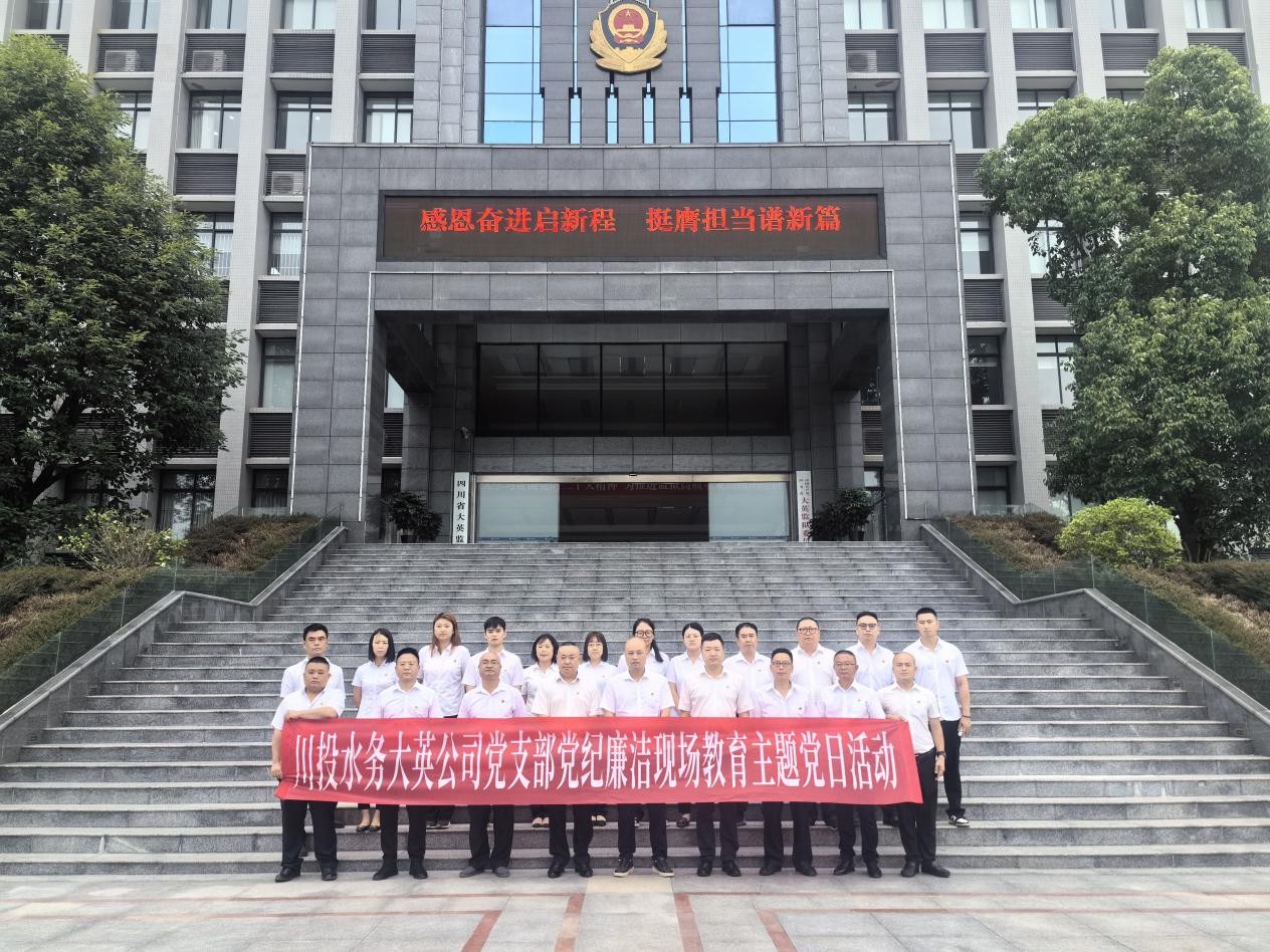 为进一步增强党员党性党风党纪意识,教育引导全体党员深化廉洁思想,筑牢思想防线。6月24日下午,川投水务大英公司党支部组织全体党员干部到四川省大英监狱,开展“党纪廉洁现场教育”主题党日活动。