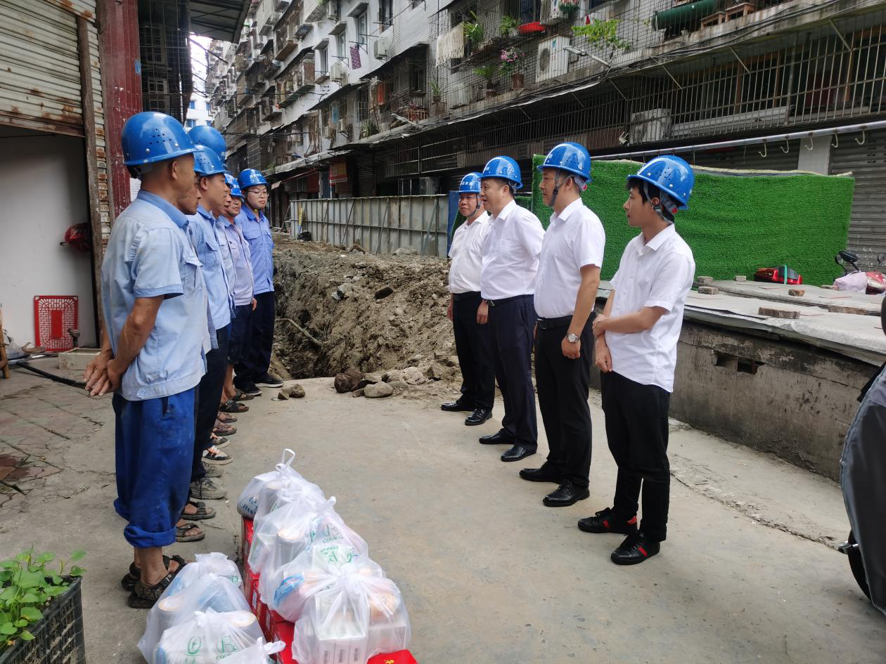 今年入夏以来,射洪市气温居高不下,一线工作者备受“烤”验。为了保障员工身体健康,确保安全生产,8月14日下午,必赢242net官网公司党委委员、副总经理刘松果率队前往射洪水司红星路管网改造施工现场对作业员工进行夏日防暑降温送清凉慰问。
