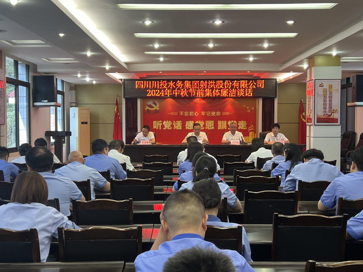 为深入学习贯彻党的二十大及二十届中央纪委三次全会会议精神,持之以恒落实中央八项规定精神,9月13日,川投水务射洪公司召开中秋节前集体廉洁谈话会,公司全体党员、重要岗位人员参加了会议。