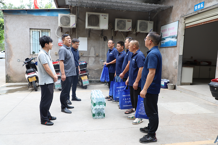 支部书记、执行董事龚庆一行深入公司厂区、安装维修队及客户服务中心,为一线职工送去了藿香正气液、板蓝根、风油精、葡萄糖口服液、矿泉水等防暑降温物资,与职工们亲切交谈,详细询问他们的工作和生活情况。同时嘱咐大家要注意劳逸结合,合理安排工作时间,做好防暑降温措施,并强调当前正值汛期,生产厂区要做好防汛措施,加强雷电天气设施设备安全检查,确保正常运行。