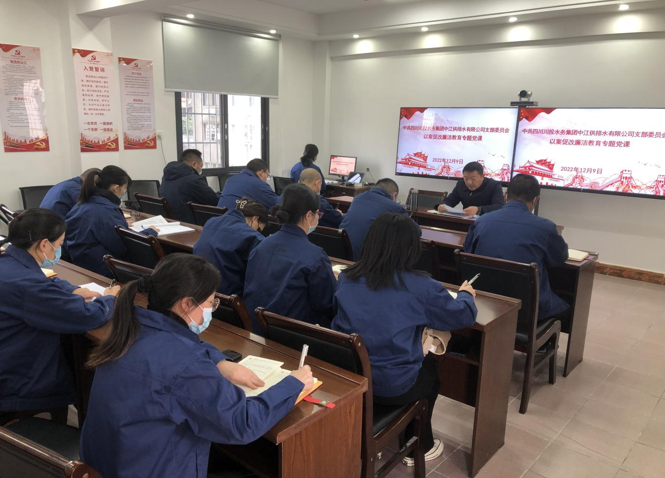 为进一步深化以案促改工作,增强广大党员干部的廉洁意识,筑牢拒腐防变的思想堤坝。12月9日下午,中江水司党支部组织开展以案促改廉洁教育专题党课,会议由党支部书记、董事长、总经理朱禹主持,支部党员、入党积极分子以及部分廉洁岗位人员,共计18人参加会议。