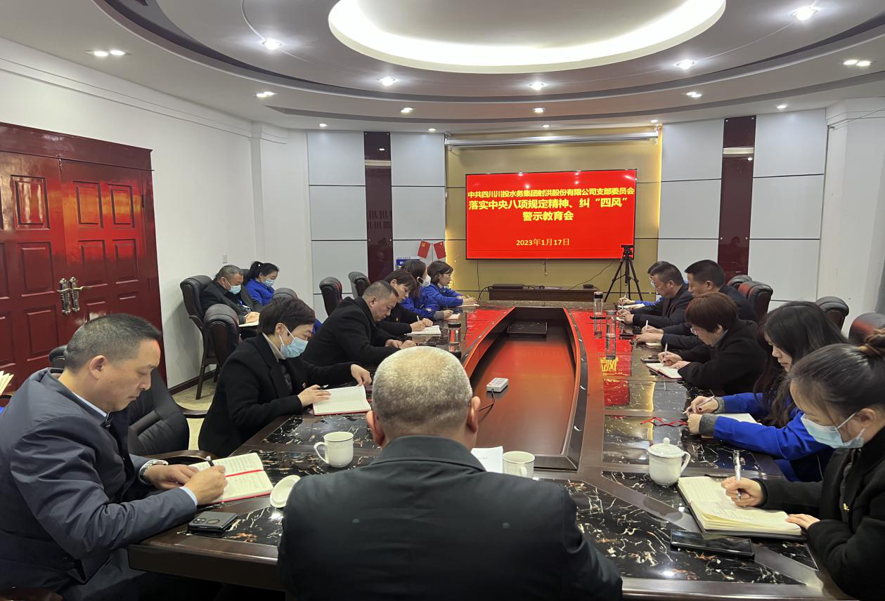 2023年1月17日,为贯彻落实川投水务纪委关于转发四川发展纪委《关于转发<中共四川省纪委办公厅关于做好元旦、春节期间纠“四风”的通知>的通知》相关工作要求,开展好春节期间纠“四风”树新风工作任务,公司党支部认真组织召开了落实中央八项规定精神、纠“四风”节前廉洁教育会,会议由党支部纪检委员、副总经理杜刚主持。