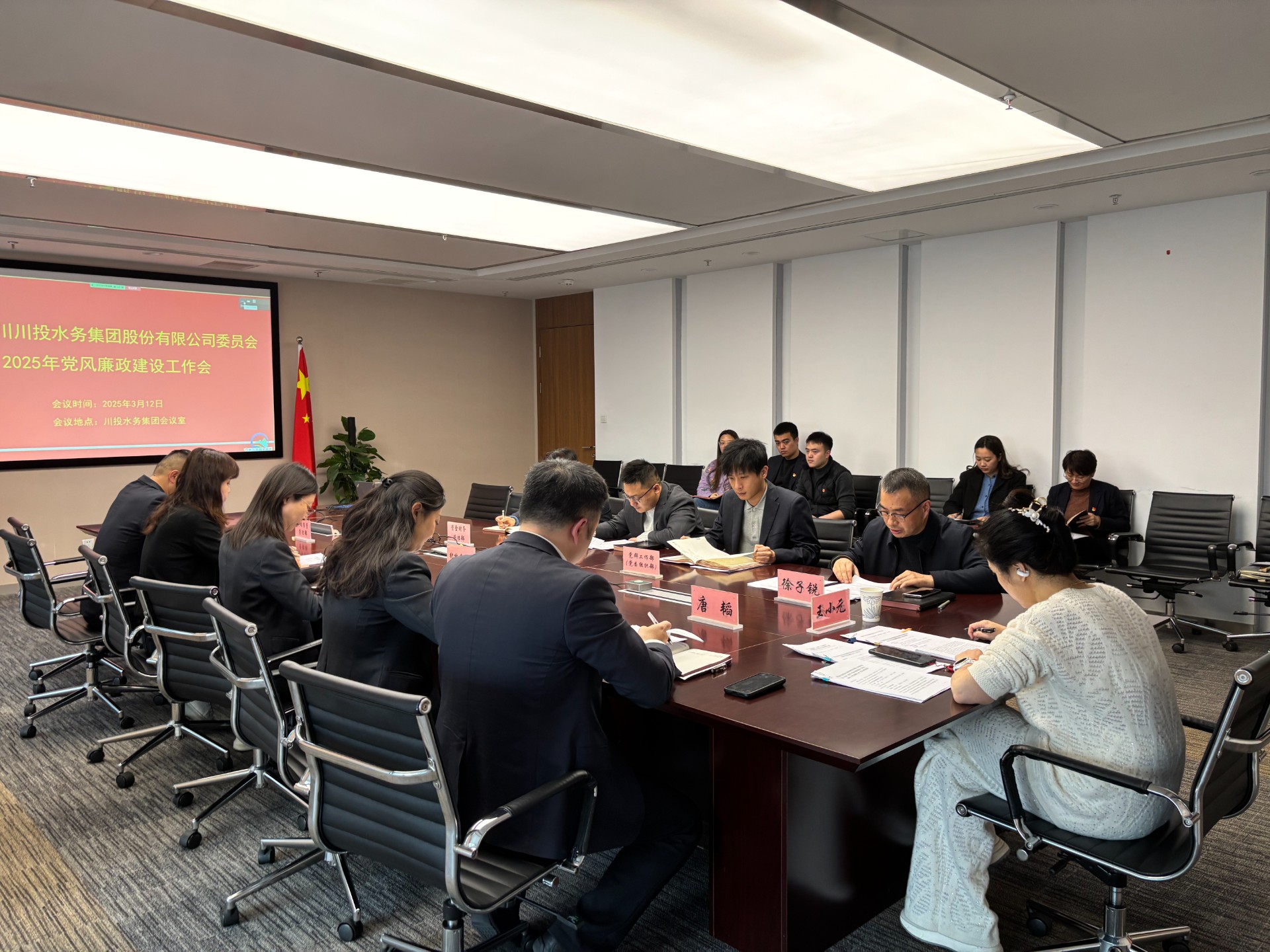 公司党委委员、副总经理唐韬传达了二十届中央纪委四次全会精神、省纪委十二届四次全会精神,以及四川发展、四川省生态环保集团2025年党风廉政建设工作会精神。党委委员、副总经理徐子锐通报了公司2024年度党风廉政建设工作情况。
