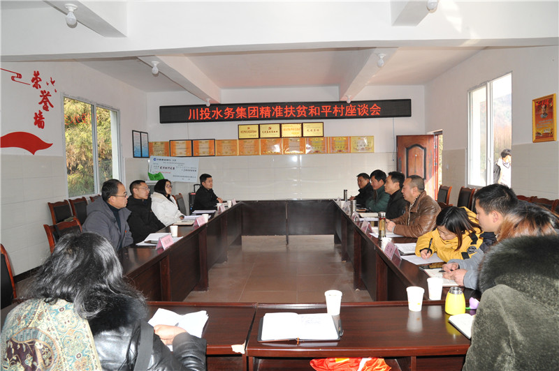 随后,邓锐总经理一行与永胜乡党委、和平村村委会相关人员就和平村扶贫工作具体事宜进行了座谈。永胜乡党委专职扶贫副书记龙勇、和平村村支部书记刘文川对川投集团、川投水务关心和平村贫困户并投入人、财、物开展高标准精准扶贫表示衷心感谢,并介绍了和平村精准扶贫和脱贫工作的基本情况。川投水务驻村工作队干部高峰向工作组详细汇报了驻村扶贫工作开展情况。