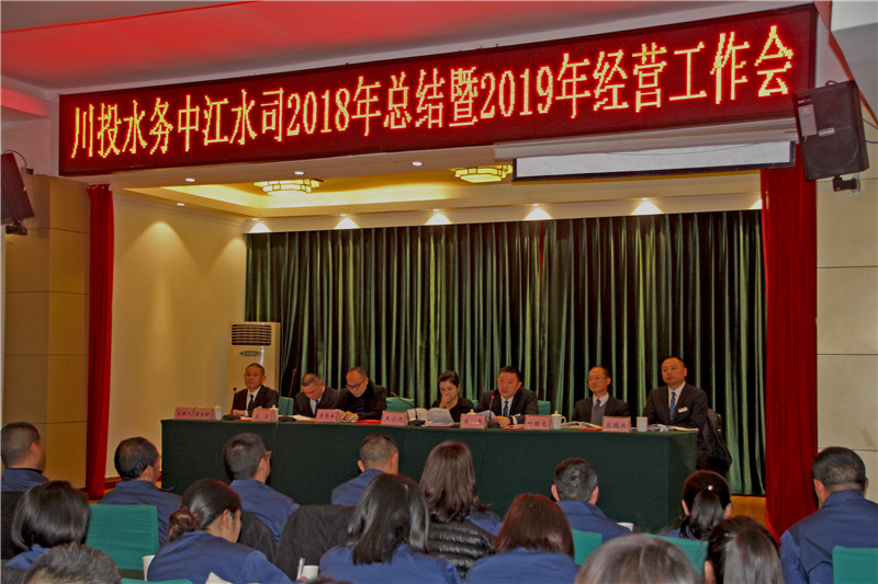 2月26日下午,中江水司在花园饭店迎宾楼四楼会议室召开2019年经营工作会。必赢242net官网党委副书记、工会主席、中江水司董事长王小元、中江凯城建设投资集团有限公司副总经理李昌良出席会议并作重要讲话。川投水务中江水司经营班子成员、全体员工共计90余人参加了会议。