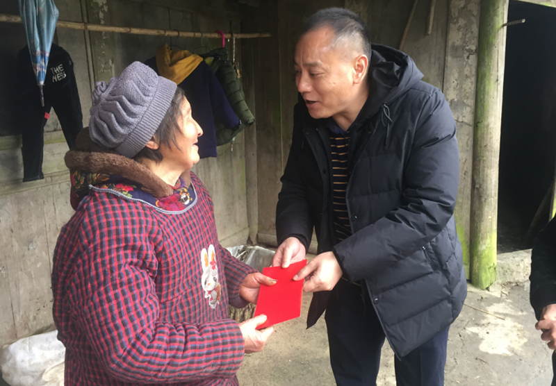 为将党的十九届四中全会脱贫攻坚新精神落到实处,2019年12月30日,受川投水务党委书记、董事长梁有国委托,川投水务党委委员、纪委书记但必良一行前往金口河区永胜乡和平村,走访慰问对口帮扶的贫困群众,开展节前“送温暖”活动。
