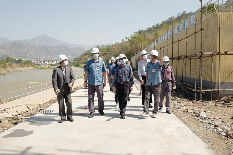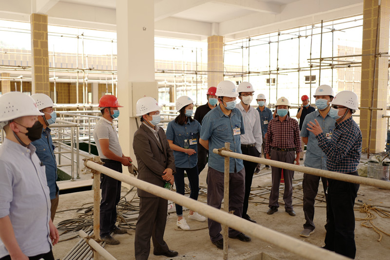 下午15时,一枝山项目工地气温高达35℃,梁有国董事长一行在川投船重公司经营班子的陪同下,顶着烈阳前往工地调研并指导工作。在工地现场,梁董事长一行严格按照新冠肺炎防疫要求进行体温检测并登记后,深入项目各主体构筑物、各设备点,对工艺流程、设备安装、中控中心等进行工作指导。