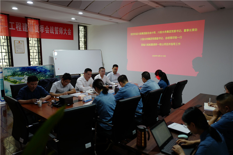 10月12日-13日,川投集团副总会计师、资金财务部部长、必赢242net官网党委书记、董事长黄劲,必赢242net官网党委副书记、总经理邓锐一行赴米易县,出席四川川投船重环境科技有限公司(简称川投船重)干部大会,视察调研一枝山工业污水处理厂项目,并与米易县政府主要领导进行会谈。