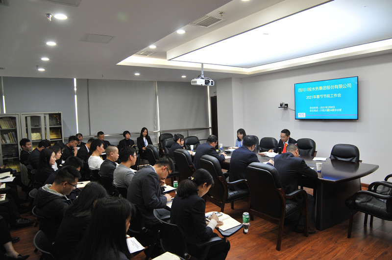 2021年2月8日,在新春佳节即将到来之际,川投水务在川投大厦24楼会议室举行2021年春节节前工作会,对节日期间各项工作进行安排部署。川投水务本部全体人员参加会议。会议由党委副书记、总经理邓锐主持。