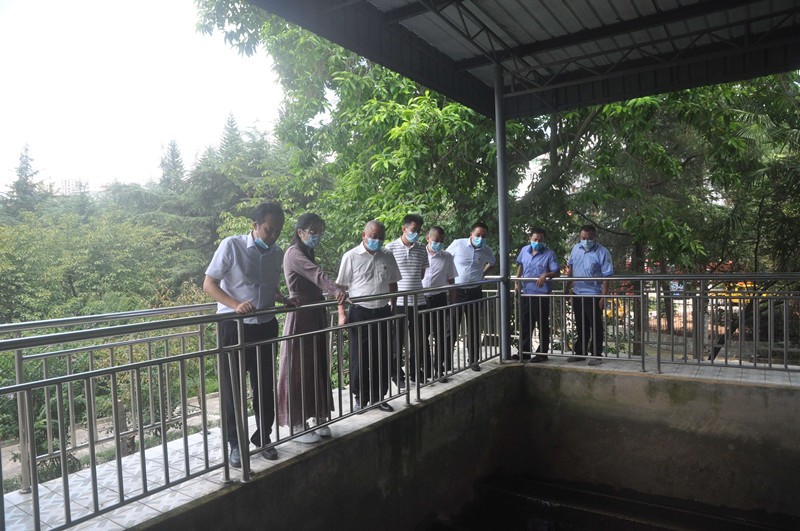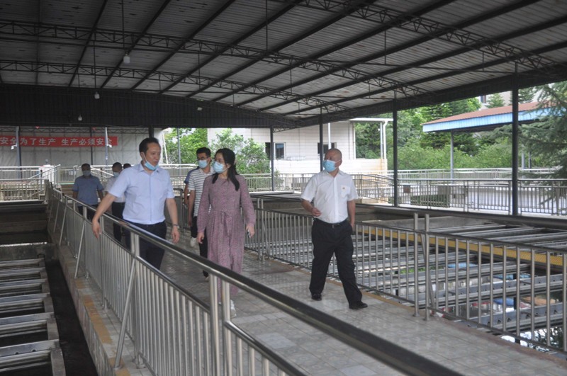 王小元一行首先来到公司生产厂区,查看了制水工艺流程,询问汛期保供方案及措施。随后前往龙滩村取水口实地检查防汛工作,听取了刘松果就疫情防控、汛期制水、安全检查、隐患排查、应急演练及防灾减灾工作落实情况的汇报。