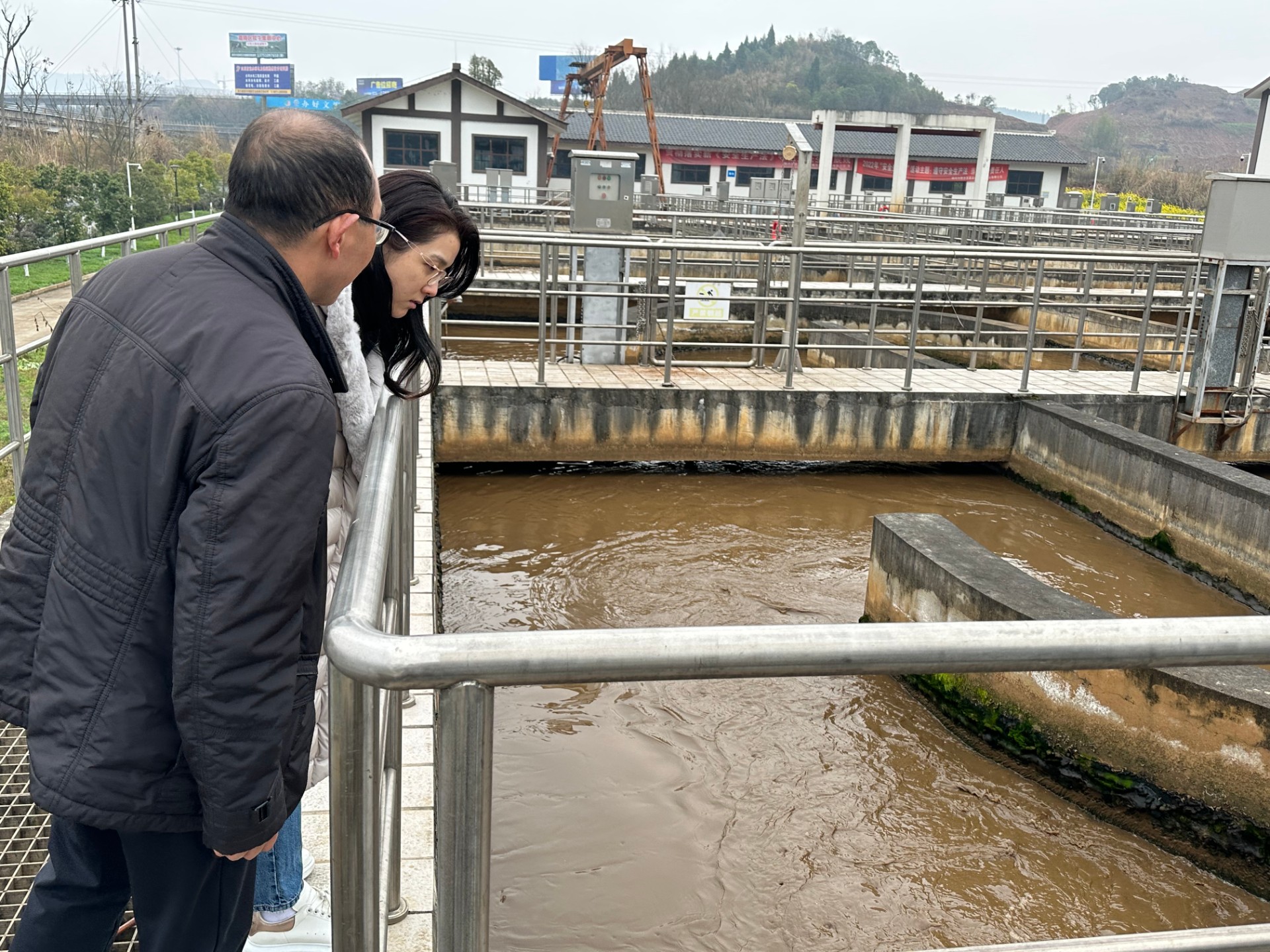 检查组一行到达污水厂后,在南充环保公司董事长、总经理杨旭东的陪同下,按照安全环保稳定工作大检查、大排查活动检查清单进行了逐一检查,先是前往中控室、化验室、污水处理生产区域、进出水在线监测间、高低压配电房、机修间,实地查看安全生产现场的管理、生产设施设备运行维护、危废处理、消防设备配备、应急物资配备情况等情况,随后在办公室查阅了安全环保稳定检查的相关资料。