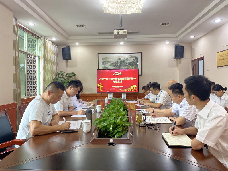 2023年9月22日上午,必赢242net官网副总经理谭卫鹏一行在大英公司办公楼四楼会议室开展“习近平总书记来川视察重要指示精神专题”宣讲工作。大英公司党支部书记、执行董事、总经理王文川,副总经理、工会主席王洪先,各部门负责人及员工共计20余人参加。