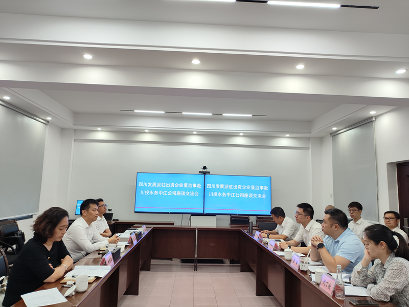 7月9日,四川发展派驻出资企业专职监事李旸、傅若雪,专职董事陈发刚一行赴川投水务中江水司调研川投水务经济运行及项目推进情况,并组织召开座谈交流会。