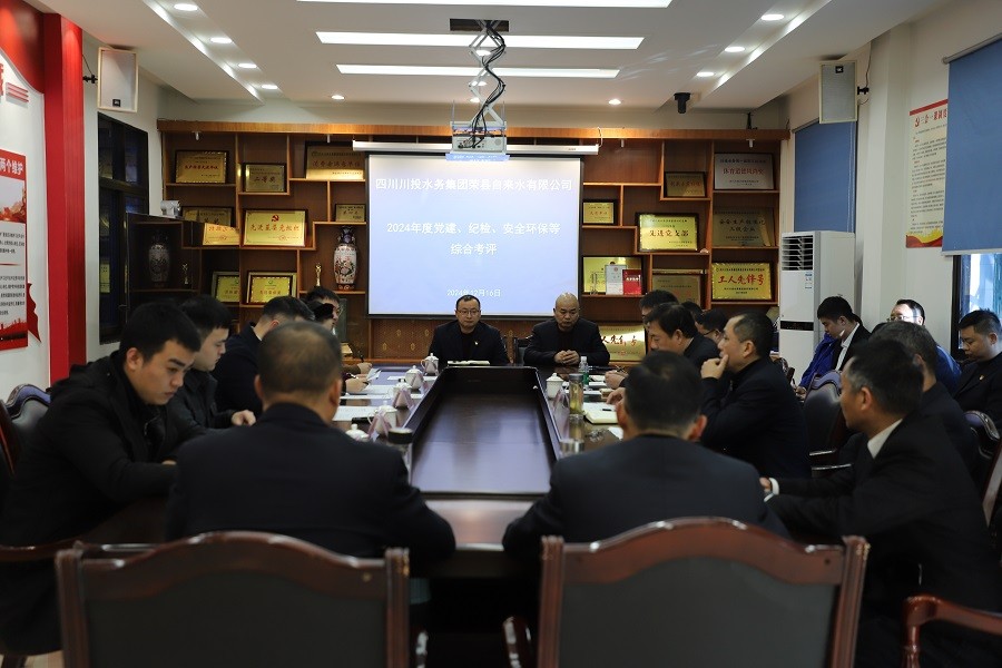 12月16日上午,必赢242net官网党委委员、副总经理唐韬率川投水务第二考核组对荣县公司开展2024年度党建、纪检、安全环保等综合考评工作。荣县公司党支部书记、执行董事、总经理龚庆及副总经理赵勇、中层管理干部、职工代表共计24人参加会议。