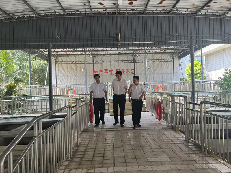 严斯亮一行首先前往制水厂区、化验室了解当前水源调度、水厂运行、供水能力等情况。随后,前往龙滩村取水口实地查看取水口防洪措施现状,对射洪水司当前防汛减灾工作采取的提前保障措施和供水保障给与了充分肯定。
