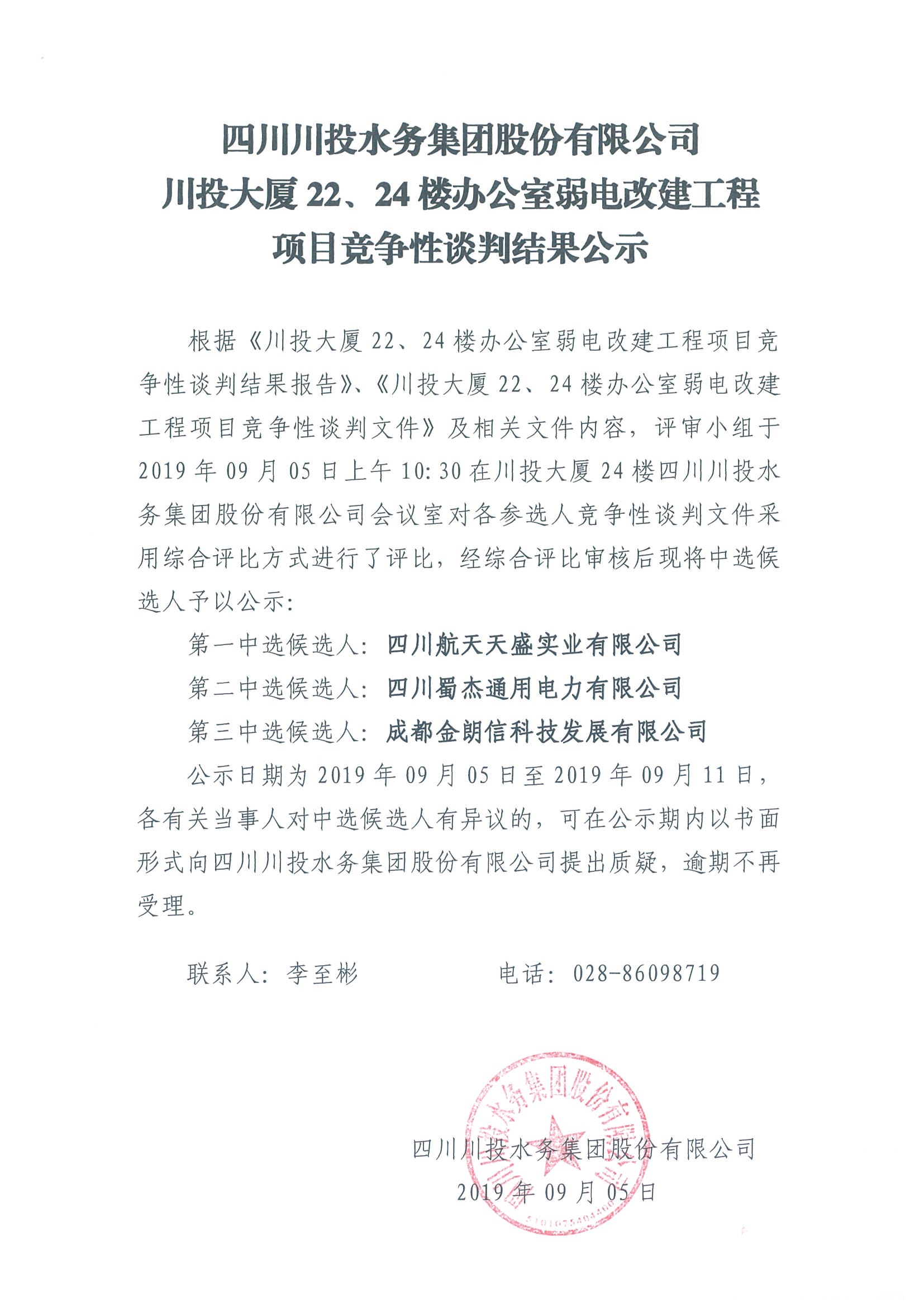 川投大厦22、24楼办公室弱电改建工程项目竞争性谈判结果公示