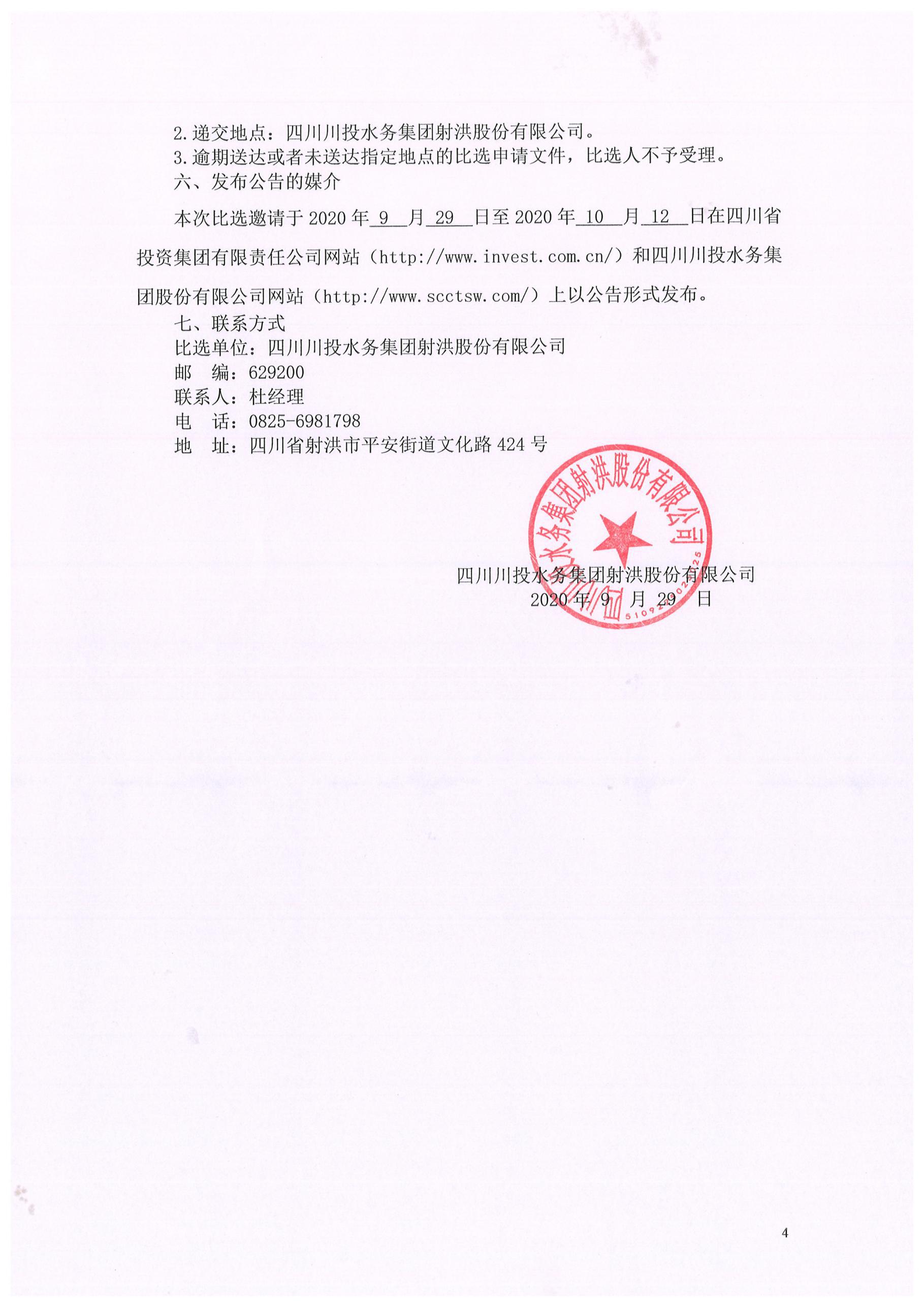 上一条:四川必赢242net官网股份有限公司射洪新建自来水厂可行性研究报告编制项目比选公告