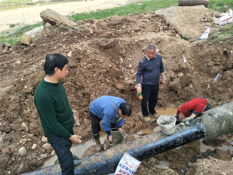2019年3月20日,剑阁水司执行董事、总经理何天政带领副总经理杜刚等相关部门负责人,就检查中发现的刘家河原水管道被洪雨季节冲刷裸露在河床外的隐患进行整治,确保洪水季节来临原水管道的正常供应保障。