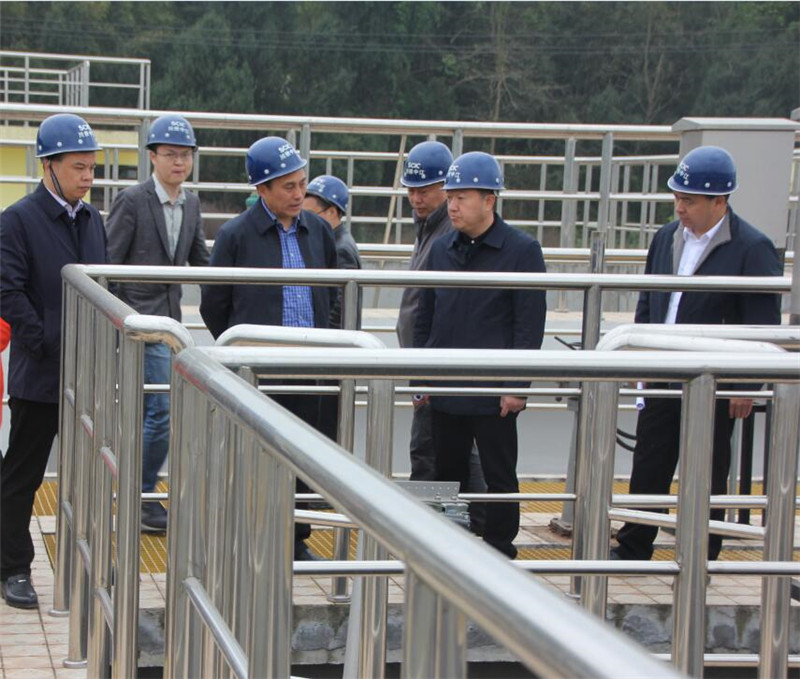 4月1日,县人大常委会主任陈立贵率人大常委会,在副县长陈勇、高新区党工委书记李成忠、县生态环境局局长黄纯太等的陪同下对中江水司辑庆、兴隆两个在建污水处理厂、试运行的猫儿嘴污水处理厂及继光水厂开展现场执法检查。