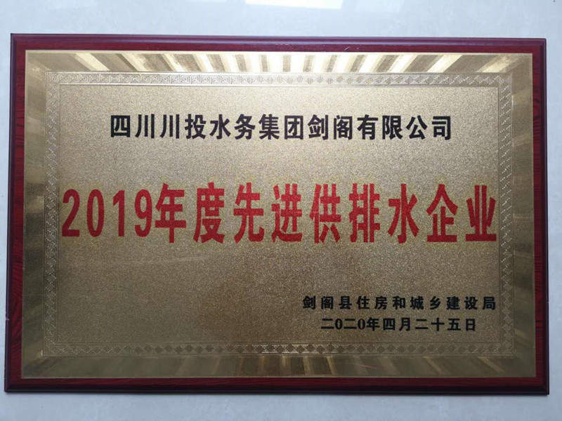 2020年4月28日,在剑阁县住房和城乡建设局组织召开的全县住建系统工作会上,剑阁水司被授予“2019年度先进供排水企业”荣誉称号。