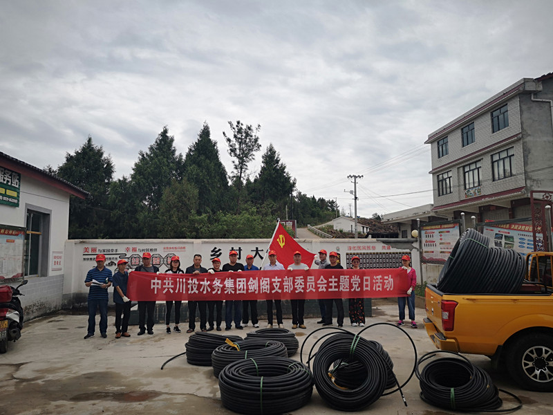 下了一夜的暴雨逐渐停息,27日清晨,凉风阵阵、天公作美,正是施工的好时机。经过2小时长途奔波,全体党员志愿者在新建村村委会集合完毕,顾不得休整便立即开展安装施工。工程车辆将一圈圈管道运送到指定“碰头”点,不用安排,党员们立即开始拆卸管道并沿既定路线完成铺设。沿途村民看见了也纷纷上来帮忙,他们开心地说道:“川投水务这是给我们做了一件大实事啊,以后自来水通到家中,再也不用跑老远去挑水了!”在党员志愿者和村民们齐心协力下,半天时间便完成了全部安装任务,共计为村里安装DN32管道1800米、DN25管道1200米。至此,新建村基本上实现了自来水户户通。