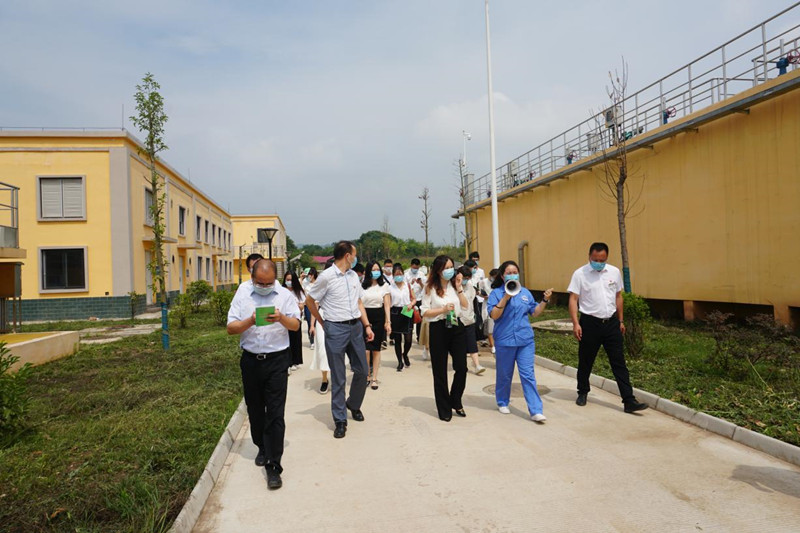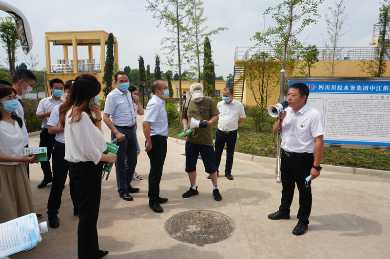 2020年6月19日上午,省生态环境厅部分党员同志一行40余人顶着高温酷暑到中江水司兴隆污水处理厂开展党建活动调研,德阳市生态环境局副局长刘文陪同调研。