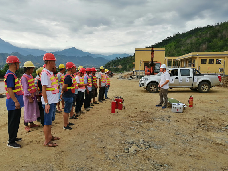 演练开始前,项目现场监理单位及施工单位安全负责人再次组织参演人员学习消防与防汛安全知识,对灭火器、消防水池、消防沙池的使用方法及沙袋装填、河堤加固等内容进行重点讲解,让演练人员全面掌握相关安全知识。