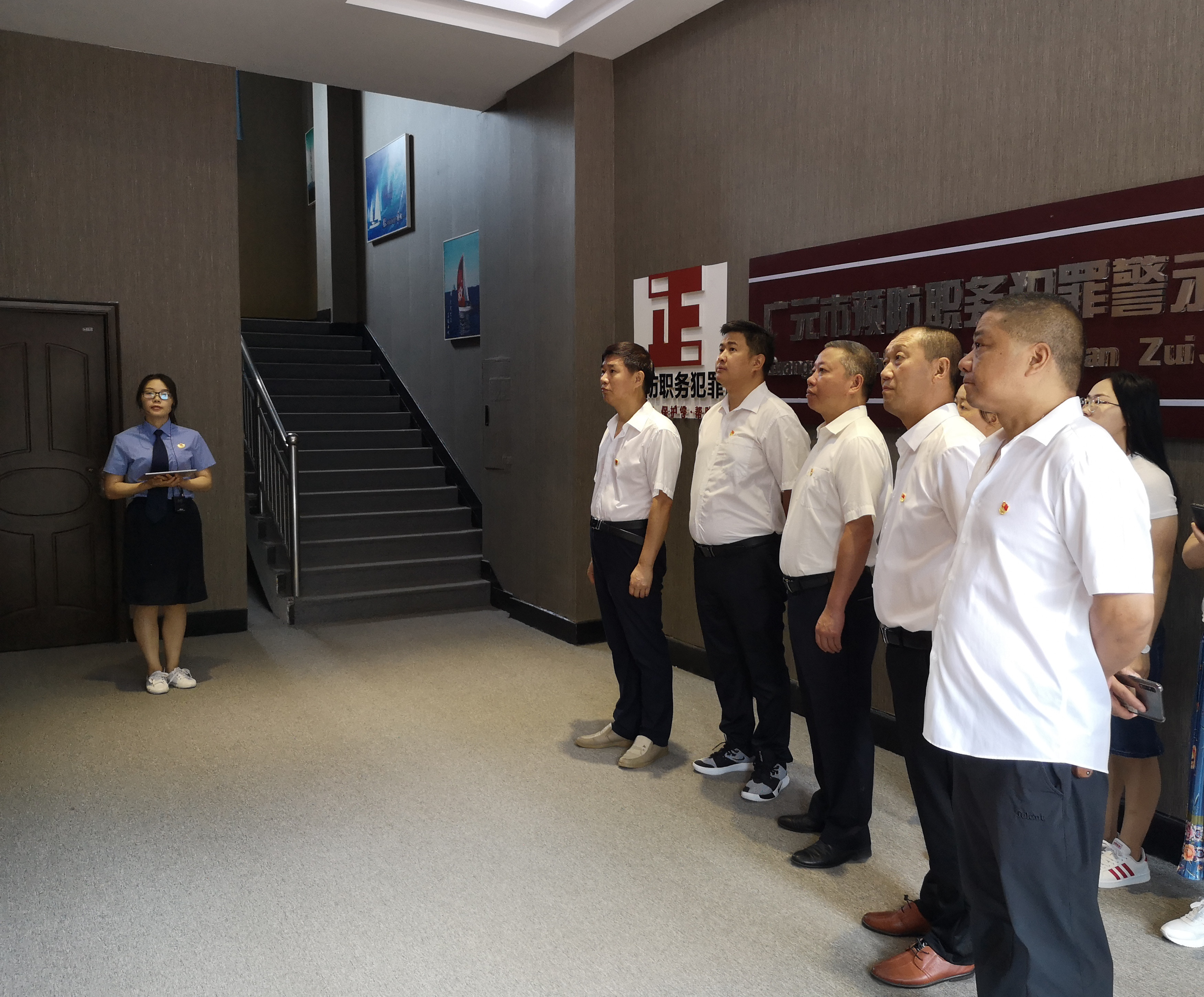 广元市预防职务犯罪警示教育(剑阁)基地共有3层,第一层为警示教育基地入口,墙上一篇宋朝周敦颐的《爱莲说》十分醒目,提醒着到此参观的每一个人要时刻保持洁身自爱的坚贞品格。第二层为警示厅,主要由前车之鉴、腐败诱因、犯罪危害和忏悔反思4个部分组成,讲解员为大家讲解介绍了近年来国内重大腐败案件和广元市典型腐败案件,并通过3D影像技术播放了警示教育片,使大家深刻明白了腐败最终只能给自己带来牢狱之灾,造成骨肉分离、家庭破裂。震撼之余来到第三层,该层主要展示了党中央反腐败的决心和力度,聆听着党中央领导们的谆谆教诲和挺纪在前的坚决态度,大家再次紧握右拳,在党旗面前重温了入党誓词。在铮铮誓言声中,结束了此次廉洁警示教育活动。