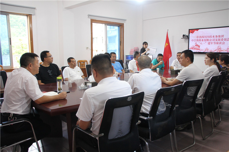 为迎接和庆祝中国人民解放军建军93周年暨抗日战争胜利75周年和中国人民志愿军抗美援朝出国作战70周年,充分体现党和政府对退役军人和在役军人家属的关怀和问候,7月29日下午,中江水司召开庆“八一”建军节座谈会。会议由党支部书记、董事长、总经理朱禹主持,支委、行政班子成员、退役军人及现役军人家属共计16余人参加会议。