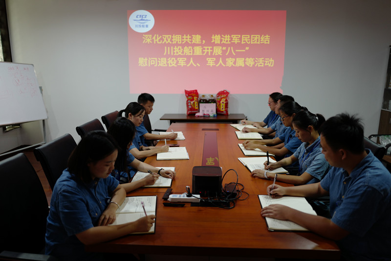 川投船重结合庆祝建军93周年,积极响应“军民携手奋进、共铸百年梦想”主题,在公司会议室开展专题活动,组织全体员工学习习近平总书记关于双拥工作重要论述,学习在党的领导下,军民团结奋斗的光辉历程、军民携手建立的丰功伟绩,学习在此次新冠肺炎疫情中军人所展现的担当精神,动员并激励全体员工学习军人精神,继续弘扬中华民族拥军优属的优良传统。