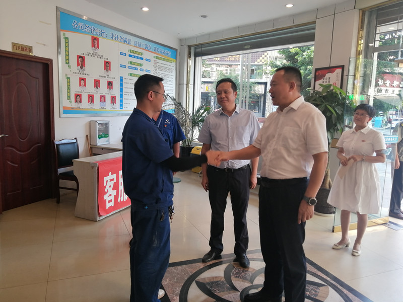 8月10日下午5时30分,大英县委副书记、县长胡铭超,县委常委、县委办公室主任、县总工会主席谭银,遂宁市中国死海旅游度假区管委会副主任敬云川等领导来到川投水务大英水司老城服务大厅,向前几日为最大限度保障供水、降低停水影响、毅然5次潜下灌满消防水的闸阀井关闭闸阀而引发社会广泛关注的川投水务大英水司“开关侠”魏巍表达问候和祝福,并送上慰问金。
