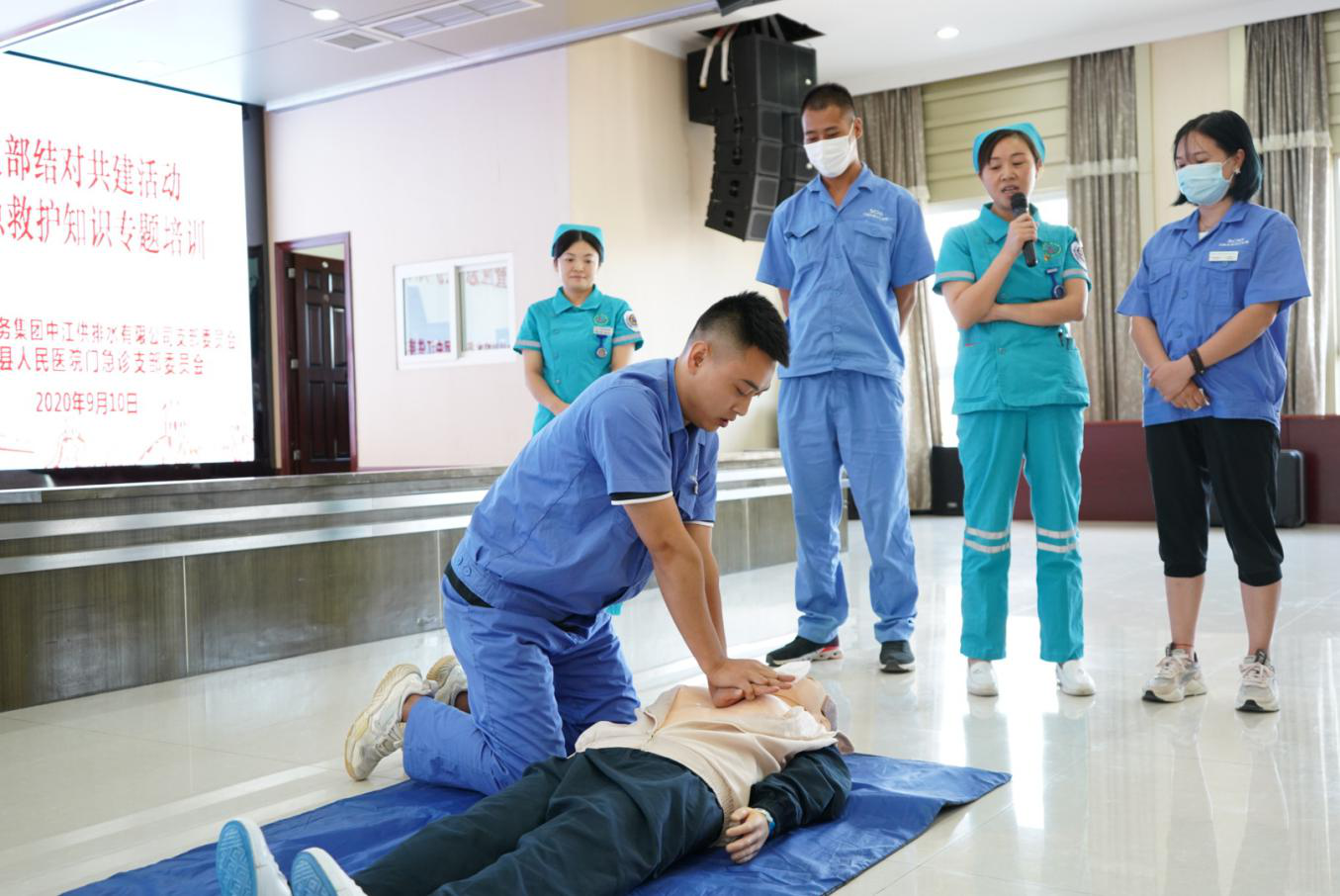 为深入贯彻落实川投集团党委“双争双创”和必赢242net官网党委“双争双创双促”活动要求,以及贯彻执行“安全第一,预防为主”的安全指导方针,通过急救知识培训,提高职工应急救护能力。9月10日,中江水司党支部与中江县人民医院门急诊支部委员会开展结对共建活动,联手为中江水司100余名员工进行了应急救护专题培训。本次活动由中江水司常务副总经理秦荣主持。