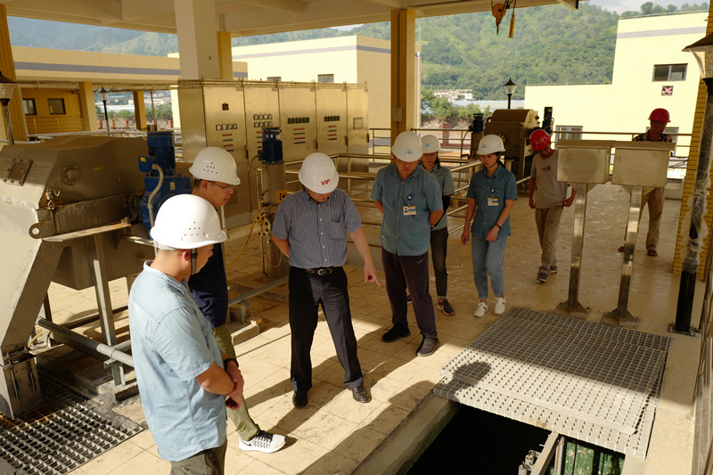在项目现场,公司项目负责人、建设安全部经理李军代表公司经营层对中船环境付总工的到来表示热烈欢迎并向中船环境付总工详细介绍项目工艺流程、设备运行状况、耗电量、加药量等情况。