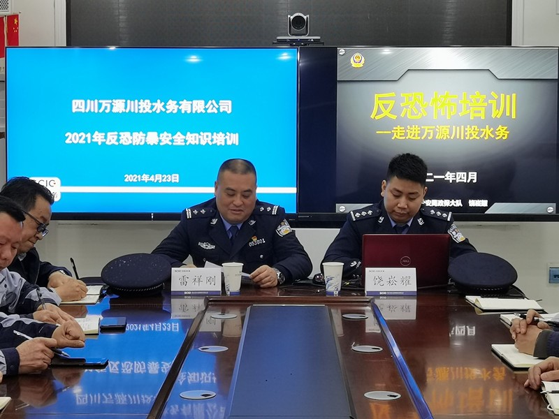 4月23日,为切实加强反恐工作,提高公司员工的防范意识和处置突发事件能力,万源水司特邀万源市公安局政治安全保卫大队大队长雷祥刚、副大队长饶崧耀对公司员工进行反恐安全教育培训。公司经营班子、中层干部、关键岗位的全体员工参加了此次培训及演练。