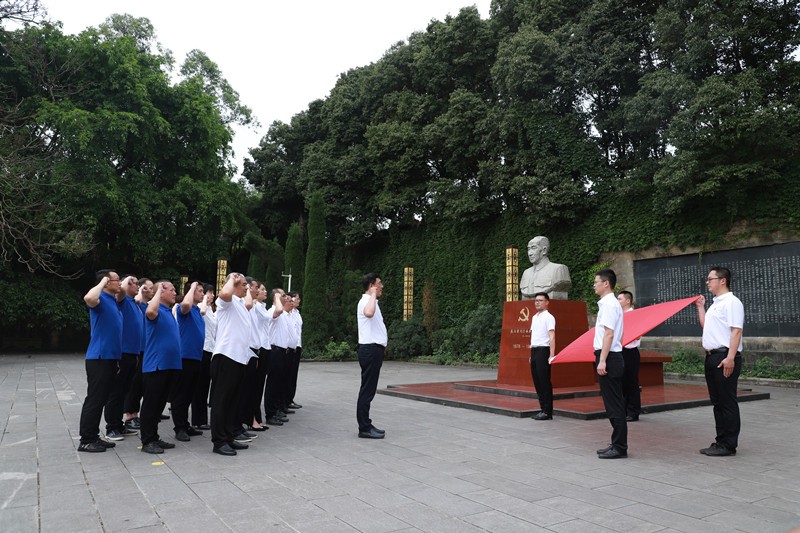 随后,在公司党支部书记龚庆的领誓下,公司全体党员在吴玉章及夫人的合葬墓前重温了入党誓词,缅怀革命先驱,学习吴老“不忘初心、几十年如一日”的革命情怀,教育引导全体党员要始终坚定理想信念、不忘初心、牢记使命,谨记党员的承诺和责任。