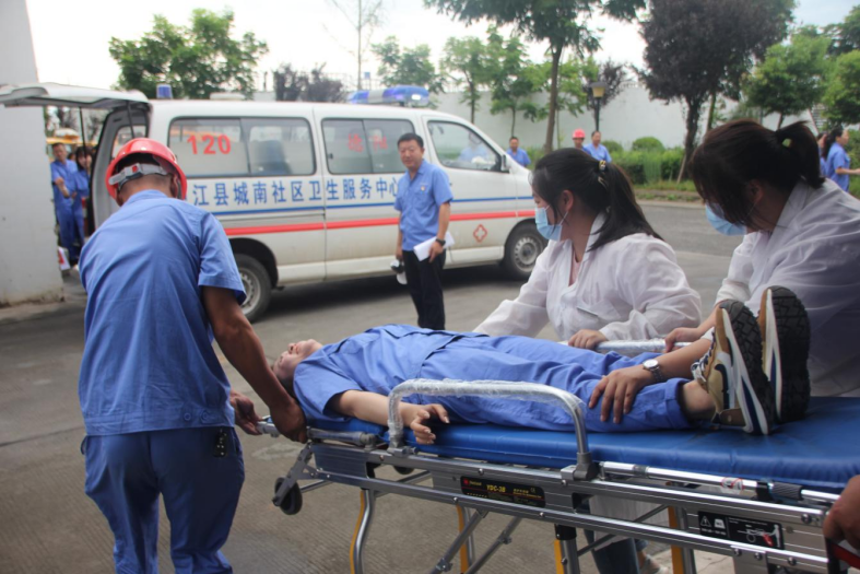 上午8:40,随着演练总指挥朱禹一声令下,演练正式开始。参演队伍迅速集结,到达演练地点按照预先设置的演练科目及流程开展演练。整个演练过程紧张有序,演练环节衔接紧密,参演人员分工明确,任务清晰,行动迅速,并在中江县城南卫生服务中心的大力支持下,圆满完成了设置的三场模拟事故演练任务。通过本次演练,检验了应急预案的科学性和实用性,锻炼了队伍,积累了实战经验,有效提高了应对突发事件的反应及处置能力。