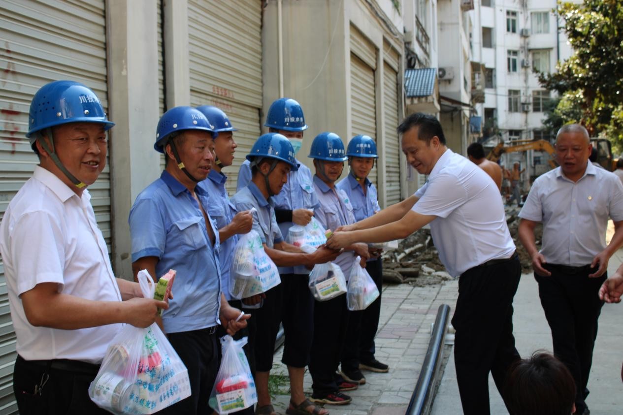 为切实做好职工夏季户外防暑降温工作,关爱一线职工的健康安全,8月11日,射洪水司党支部书记、董事长、总经理刘松果带队到滨江小区施工现场,开展2022年“夏送清凉”慰问活动,为高温下在户外工作的一线员工送去清凉与关爱。