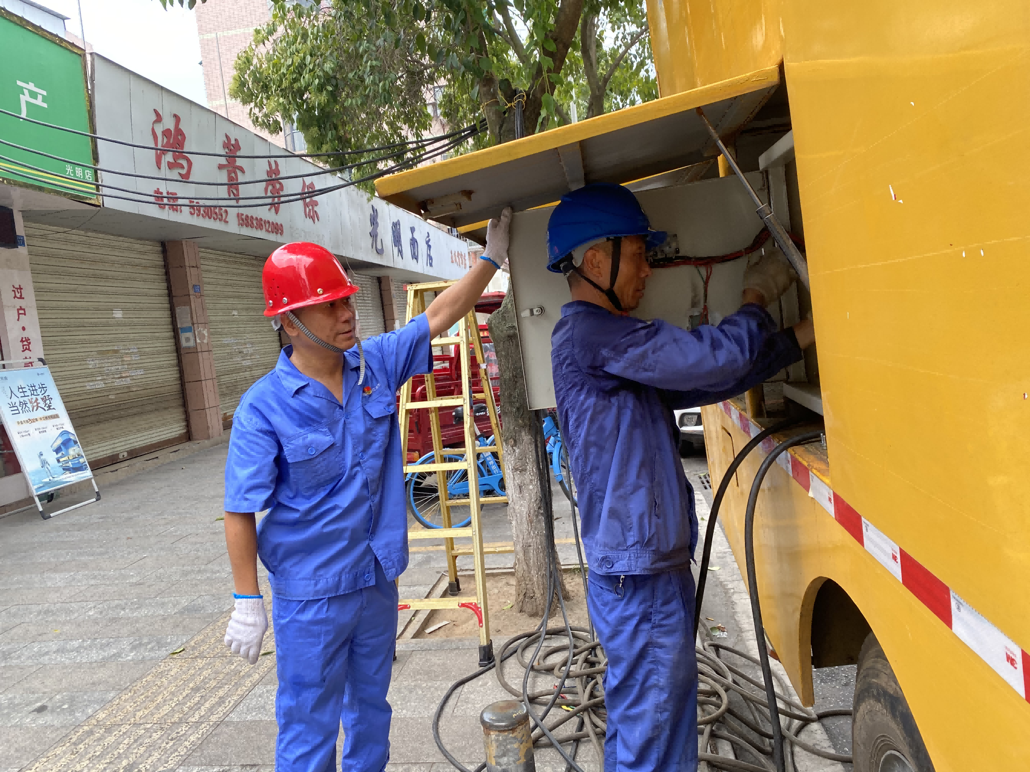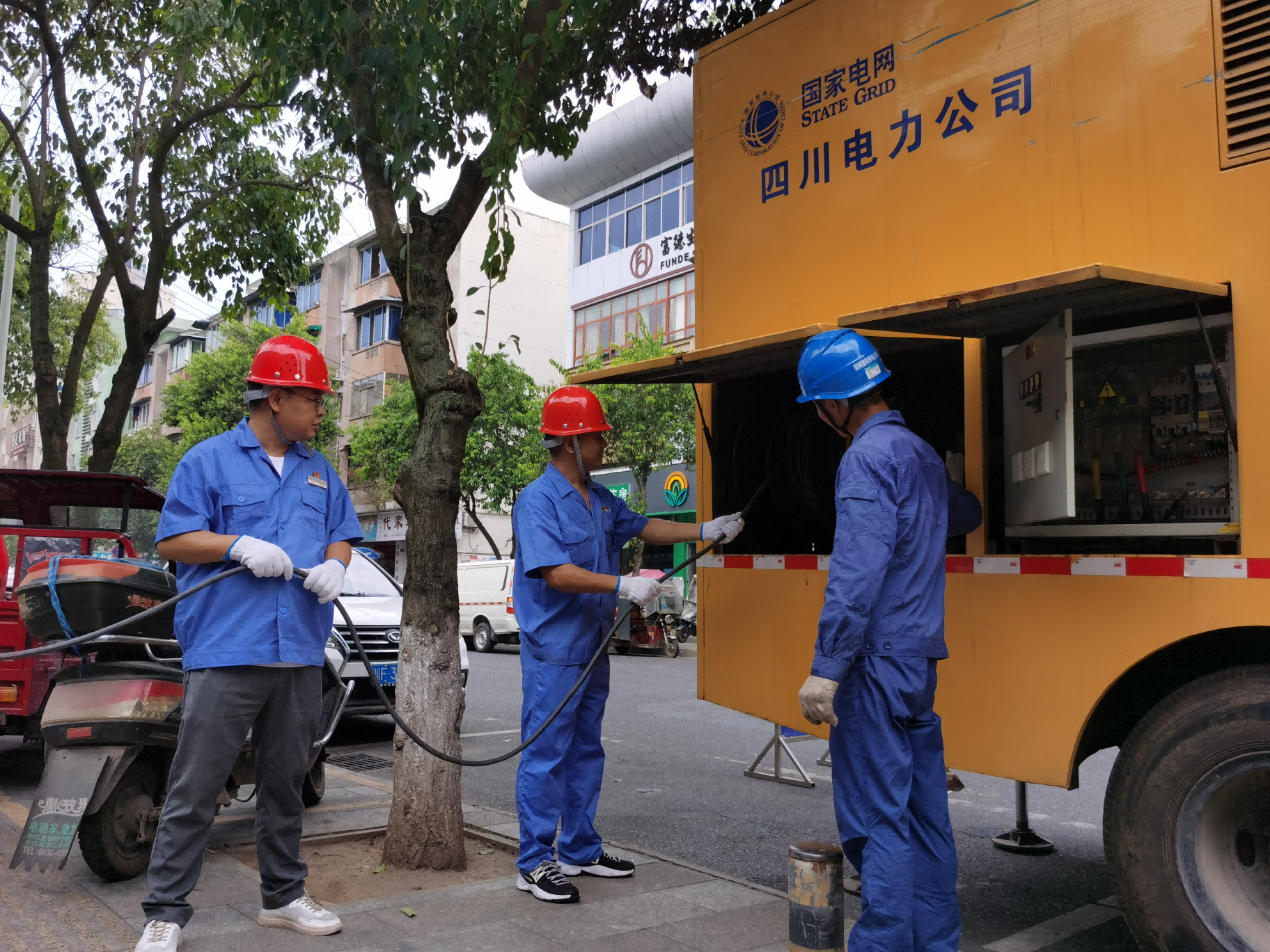 8月23日、24日,中江水司城区供水泵房再度停电,发电机也因连续高温运转故障,为确保用户高温天气下生活用水需求,公司迅速启动应急预案,党支部书记、董事长、总经理朱禹立即与国网四川省电力公司中江县供电分公司沟通协调,请求调配应急发电车给予电力支援。对接联系后,中江供电分公司迅速组织精干力量,电力技术人员与公司供水部职工顶着烈日,冒着酷暑,身上的衣服已经湿透,仍以最快的速度启动发电车,恢复供水泵房正常生产,居民用水得以保障。