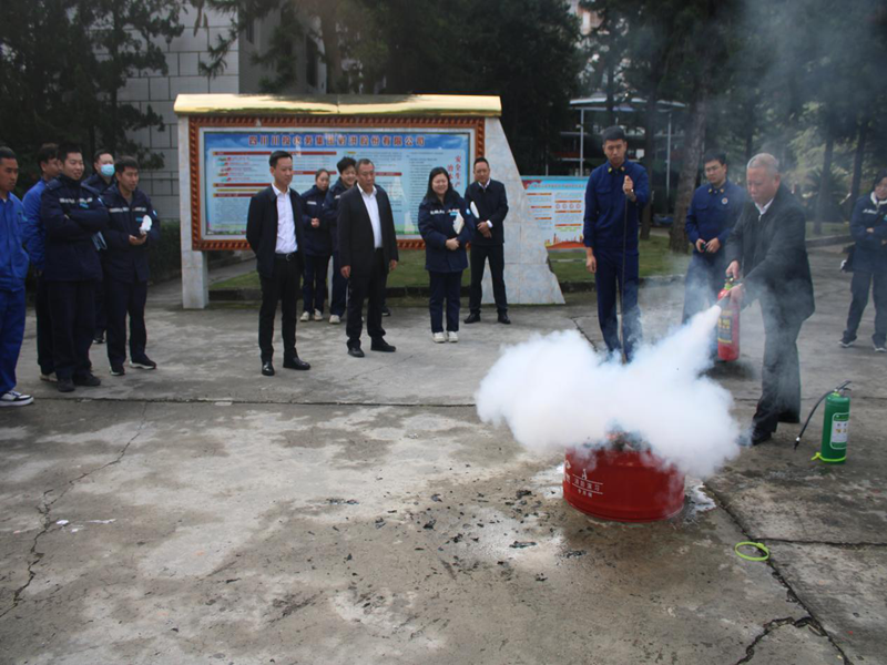 随后,现场模拟火情,组织模拟消防逃生演练,现场演示讲解干粉、二氧化碳和水基灭火器的使用方法和注意事项。