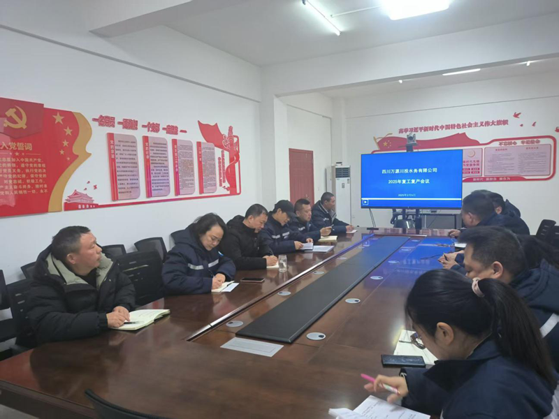 2025年2月5日,为全面贯彻落实必赢242net官网的复工复产要求,确保新一年供水工作的顺利开展,川投水务万源公司在驮山水厂会议室组织召开了2025年复工复产会。公司领导班子及中层干部参加此次会议。