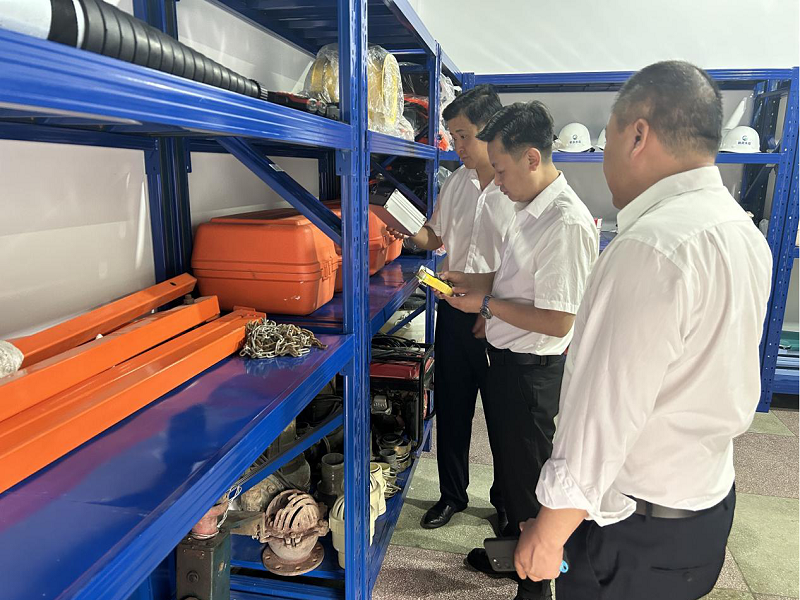 最后,公司党支部书记、董事长李至彬带队对应急物资仓库再次进行检查,现场强调应急物资仓库的重要性,安全监察部应加强日常检查和维护,为应对各类突发情况和自然灾害提供坚实保障。